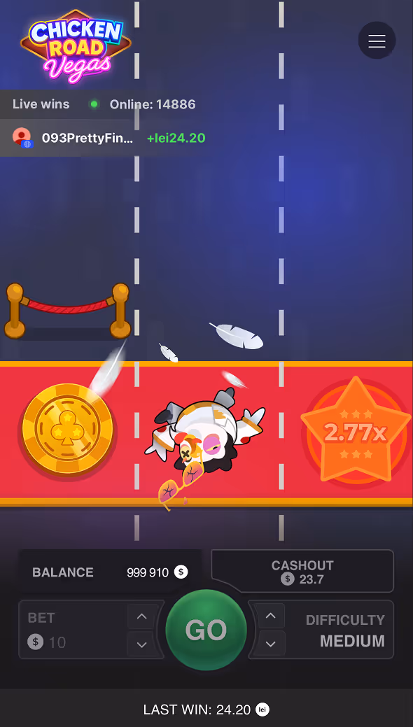 “Chicken Road Vegas - our hit chicken has finally made it to Vegas! The legendary bird swaps traffic for neon lights and high stakes in this dazzling new edition of the Chicken Road series. Players choose their bet, pick their risk level, and guide the fearless chicken across a glimmering Las Vegas boulevard packed with coins, cars, and endless chances to win big. Take the chicken to Vegas - and let the golden lights decide your fortune!” - InOut Games