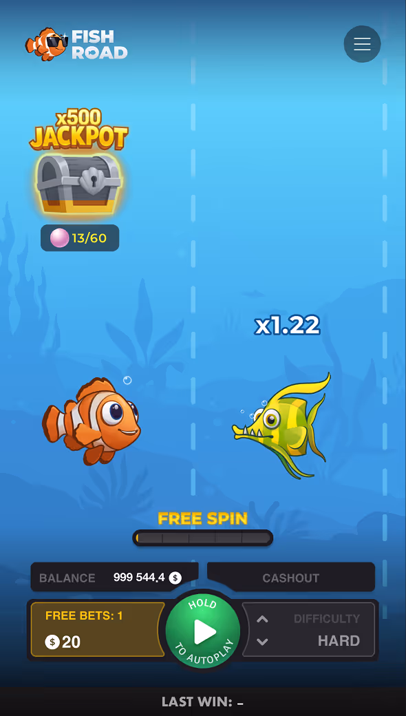[GAME_NAME] takes the ‘road crossing’ game from the streets and sends it underwater for a fresh, fishy experience! Unlike traditional crash games, you’ll be betting on steps across a fish highway instead of betting on a rising multiplier. You are in control of when to cashout or if you want to risk another step for bigger wins!