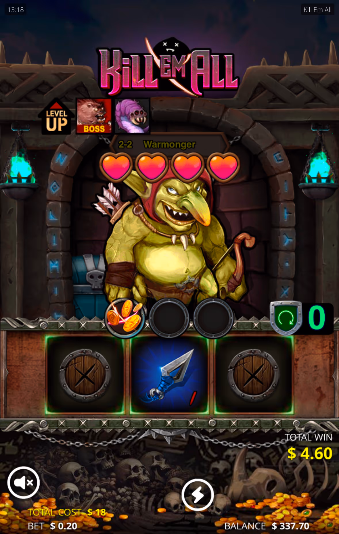 Kill Em All is an interesting cross between traditional slot games and arcade style instant win gaming. Players fight their way through hoards of monsters, searching for the treasure hidden in the dungeons. Killing the final monster in the boss battle will award the max win of 11,906x!